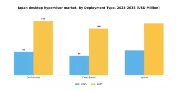 日本のデスクトップハイパーバイザー市場では、ITインフラに対する管理強化を求める組織により、オンプレミス導入が最大の市場シェアを占めております。データプライバシーへの懸念やコンプライアンス要件から、従来型企業ではこの導入形態が引き続き支持されております。一方、柔軟性と拡張性を重視する企業にとって魅力的なクラウドベース導入が急速に台頭しております。ワークロードのクラウド移行が進むにつれ、導入形態の選好に大きな変化が生じ、このセグメントは大幅な成長が見込まれております。日本におけるデスクトップハイパーバイザー市場の成長傾向は、いくつかの主要な推進要因によって影響を受けています。ハイブリッドワークモデルの普及拡大は、柔軟なITソリューションへの需要を加速させ、クラウドベース導入を後押ししています。さらに、仮想化技術の進歩と費用対効果の高いソリューションへの関心の高まりが、クラウドベースセグメントの急速な拡大に寄与しています。一方、オンプレミスは、IT戦略においてセキュリティと制御を優先する企業にとって、依然として確固たる基盤となっています。