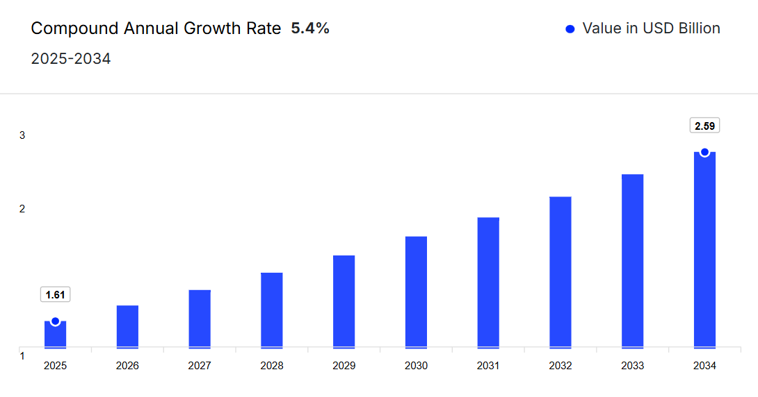 - 予測市場規模(2034年): 25億9,000万米ドル