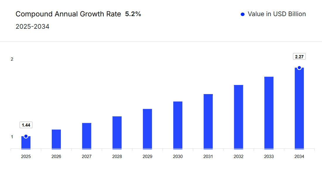 - 予測市場規模(2034年): 22億7,000万米ドル