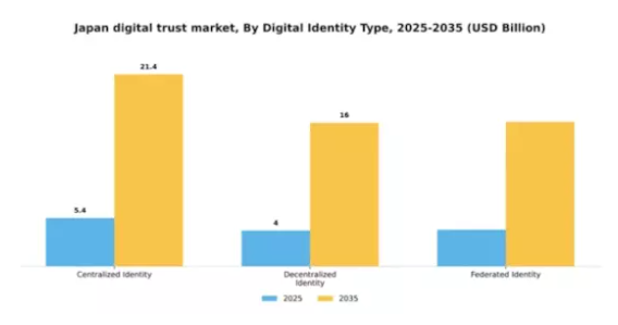 日本のデジタルトラスト市場において、デジタルアイデンティティの種類別の市場シェア分布を見ると、集中型アイデンティティが最大のセグメントとして支配的であることが明らかです。これに続き、分散型アイデンティティが特にユーザー制御とプライバシー強化の可能性から、有力な競合として台頭しつつあります。フェデレーテッド・アイデンティティは重要ではありますが、現時点ではこれら二大プレイヤーと比較してシェアは小さい状況です。このセグメントの成長傾向は、プライバシーとセキュリティに対する消費者需要の高まりを背景に、より分散型ソリューションへの移行を示しています。ブロックチェーンや分散型台帳技術(DLT)の進歩がこの移行を促進しており、分散型アイデンティティが最も急速に成長しているセグメントとなっています。組織がユーザー中心の信頼フレームワークの重要性を認識するにつれ、集中型アイデンティティも進化を続けていますが、そのペースはより安定したものとなっています。
