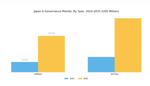特に、これはより機敏で応答性の高い公共部門の実現を目指す日本の野心と合致しており、差し迫った課題に対処するための技術プロバイダーとの継続的な連携も進められています。さらに、高まるサイバーセキュリティへの懸念から、当局は機密データを保護する安全なソフトウェアソリューションへの投資を迫られており、高度なセキュリティプロトコルを備えたソフトウェアの需要を押し上げています。結局のところ、日本電子ガバナンス市場の継続的な進化は、デジタルシフトを促進し、現代的なガバナンスを確保する上で、ソフトウェアとサービスの双方の重要性が増していることを裏付けています。