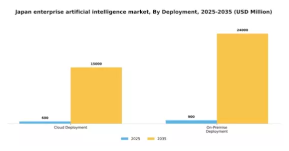 日本の企業向け人工知能市場では、スケーラビリティと柔軟性を求める企業により、クラウド導入が最大の市場シェアを占めています。この導入形態は、高度なAI機能をシームレスに統合できる点が高く評価され、組織の業務効率化や意思決定プロセスの強化を可能にします。一方、オンプレミス導入は、企業がAIソリューションにおいてデータセキュリティ、規制順守、カスタマイズを優先する傾向から、急速な成長を見せています。成長傾向からは、クラウドとオンプレミス双方の利点を組み合わせたハイブリッド導入モデルへの大きな移行が示されています。この傾向に寄与する要因には、安全なデータ管理への需要の高まり、AI技術への投資増加、企業におけるデジタルトランスフォーメーションの進展などが挙げられます。組織が変化する市場動向に適応するにつれ、導入戦略は進化を続け、AI実装のダイナミックな環境を創出していくでしょう。