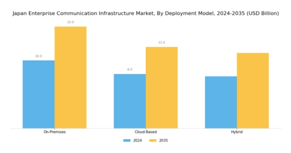 日本企業向け通信インフラ市場の導入形態セグメントは、組織が急速に変化する環境において、より効果的な通信と運営の方法を求める中、著しい発展を遂げています。ビジネスオペレーションのデジタル化が進む中、導入ソリューションへの注目は極めて重要となっています。日本の企業は、通信能力を強化するために様々な導入戦略を活用しています。このセグメントでは、主に2つの戦略が顕著です:オンプレミスとクラウドソリューションです。オンプレミスソリューションは、その制御性とセキュリティから従来好まれてきました。企業は重要なデータを自社施設内に保持でき、信頼性と規制遵守の感覚を提供します。