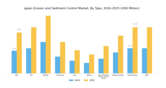 日本政府は環境保護強化を目的とした様々な施策を実施しており、これは浸食・土砂管理市場に直接的な影響を与えています。浸食防止対策を組み込んだインフラプロジェクトへの資金援助プログラムが普及しつつあります。2024年には、土壌保全と堆積物管理に焦点を当てたプロジェクトに対し、政府は約200億円を配分しました。この財政支援は革新的な浸食防止ソリューションの導入を促進し、市場の成長を刺激しています。環境問題に対する国民の意識が高まる中、政府の後押しは浸食・堆積物防止市場の将来を形作る上で重要な役割を果たすでしょう。