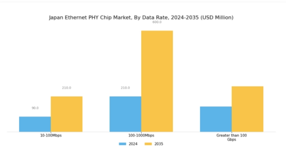 日本のイーサネットPHYチップ市場、特にデータレートセグメントは、様々なアプリケーションにおける高速接続への継続的な需要を反映した、多様で進化する状況を示しています。このセグメントは主に3つのカテゴリーで構成されています:10-100Mbps、100-1000Mbps、および100ギガビット/秒以上です。10-100Mbps帯域はネットワークインフラの基盤層として機能し、主に標準的なインターネットアクセスと基本的な通信ニーズをサポートします。コスト効率が優先される小規模なホームオフィスや企業向けソリューションにおいて極めて重要です。