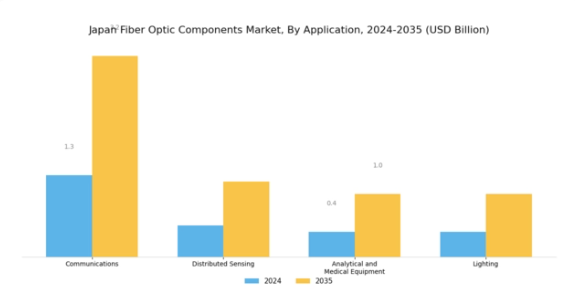 日本の光ファイバー部品市場は多様な応用分野を有し、通信、分散型センシング、分析・医療機器、照明を中心に様々な産業で重要な役割を果たしています。通信分野では、光ファイバー部品は高速インターネットや通信サービスに不可欠であり、日本の都市部と地方を問わず接続性を大幅に向上させています。