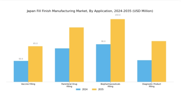 カートリッジは自動注射器との互換性から利用が増加しており、慢性疾患管理における患者様の服薬遵守率向上に寄与しています。アンプルは使用頻度は低いものの、敏感な化合物を優れた保護性能で保持し、単回投与用途に頻繁に採用されています。各製品種類は、日本の多様な治療ニーズに応える独自の利点を提供し、充填・仕上げ製造セクター全体の成長と革新に貢献しています。市場動向は、製造技術の継続的な進歩と厳格な規制環境を反映しており、これらの主要製品種類を取り巻く選好やトレンドを形成しています。