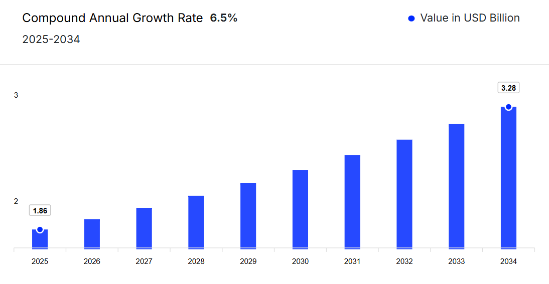 健康意識の高まり、高齢化、フィットネス活動への参加増加を背景に、市場は成長を続けております。消費者は、筋力、持久力、そして総合的な健康状態をサポートするために、プロテインパウダー、ビタミン、ミネラル、パフォーマンス向上サプリメントを採用しています。予防医療と栄養の重要性に対する認識が高まっていることが需要を増加させています。機能性サプリメントや天然サプリメントを含む技術革新と製品の多様化が、より多くの消費者を惹きつけています。市場は競争が激しく、国内外のブランドが品質、規制順守、小売および電子商取引チャネルを通じた戦略的流通に注力しています。本市場は、2025年から2034年の予測期間において、年平均成長率(CAGR)6.50%で成長すると見込まれております。