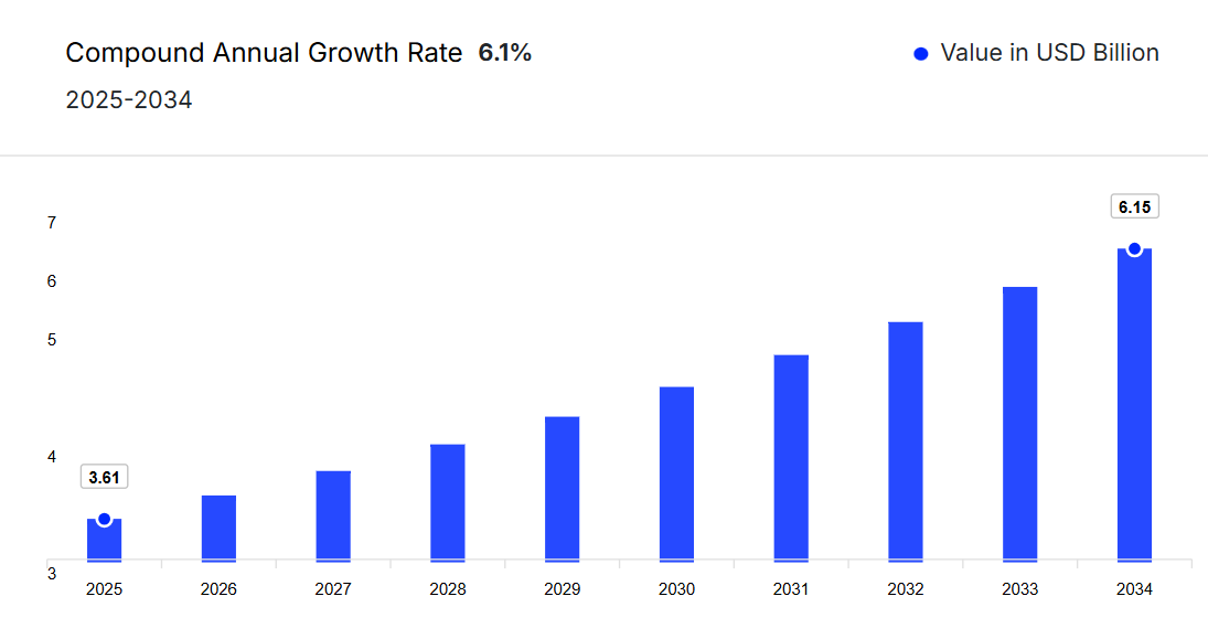 • 予測市場規模(2034年): 61億5,000万米ドル