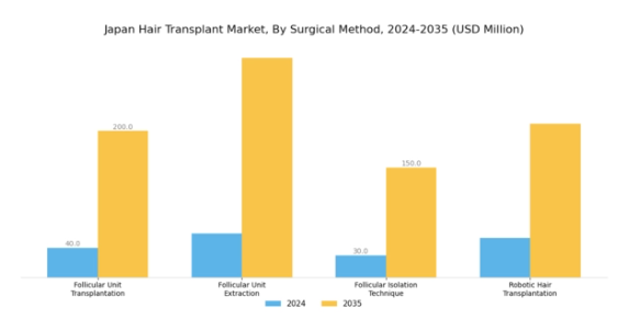 脱毛対策に対する意識の高まりは、植毛市場における重要な推進要因です。日本では、脱毛が心理的・社会的に与える影響を認識する方が増加しています。この認識の高まりが、植毛施術に関する問い合わせや相談の増加につながっています。最近の調査によると、人口の約30%が薄毛を懸念しており、効果的な解決策への需要が急増しています。より多くのクリニックが教育リソースや相談を提供し、一般の知識向上に貢献するにつれ、植毛市場は変化を遂げています。メディアキャンペーンやソーシャルメディアのインフルエンサーが毛髪再生の選択肢を促進することで、この傾向は継続し、市場の成長をさらに加速させるでしょう。その結果、信頼できる毛髪再生手段を求める情報通の消費者層に対応し、産業は大幅な拡大が見込まれます。