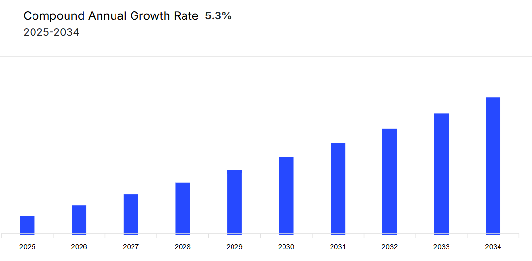 2025年から2034年にかけて、市場は年平均成長率(CAGR)5.30%で成長すると予測されています。
