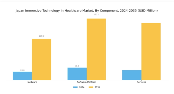 日本の医療向け没入型技術市場は、特にハードウェア、ソフトウェア/プラットフォーム、サービスを含むコンポーネント分野において、堅調な成長可能性を示しています。コンポーネント分野は没入型体験の向上に根本的な役割を果たしており、医療現場では研修、患者ケア、リハビリテーションへの導入が拡大しています。ハードウェアには、医療従事者と患者双方にとって重要な没入型・双方向体験を提供する、仮想現実ヘッドセット、拡張現実グラス、触覚フィードバックシステムなどのデバイスが含まれます。