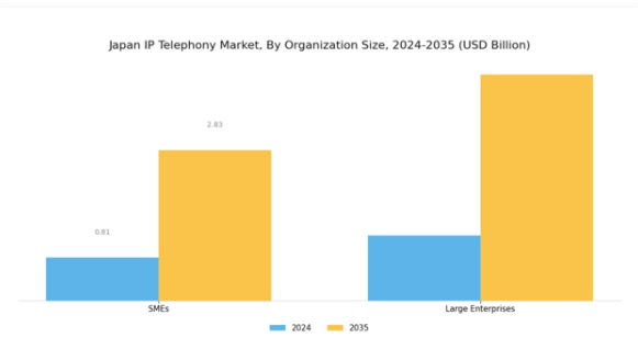コスト効率の高い通信ソリューションへの需要の高まりと、クラウド技術の進歩が相まって、両セグメントをデジタル時代へとさらに推進し、市場の大幅な進化の基盤を整えています。日本企業におけるリモートワークの潮流やグローバル化への適応が進む中、組織規模セグメントは日本のIPテレフォニー市場の将来を形作る上で極めて重要な役割を担うでしょう。