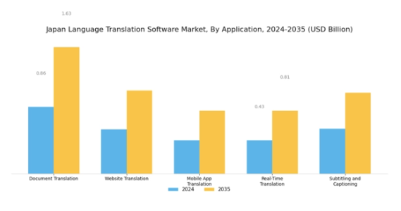 市場セグメントの洞察言語翻訳ソフトウェア市場のアプリケーション別洞察日本の言語翻訳ソフトウェア市場のアプリケーション分野は多様でダイナミックなセクターであり、様々なプラットフォームにおける通信強化に重要な役割を果たしています。文書翻訳は、日本企業や個人にとって不可欠であり、法律、医療、技術分野での正確な通信を促進し、効果的な異文化間交流の主要な貢献要素となっています。ウェブサイト翻訳も非常に重要です。