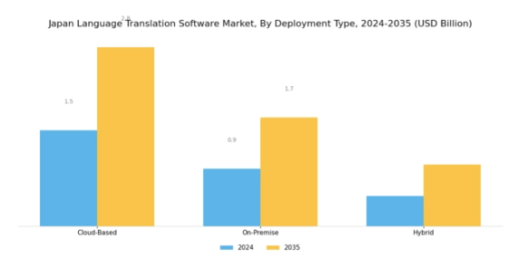 出典:一次調査、二次調査、Market Research Futureデータベースおよびアナリストレビュー言語翻訳ソフトウェア市場:導入形態の種類別インサイト日本の言語翻訳ソフトウェア市場は、導入形態の種類セグメントにおいてクラウドベース、オンプレミス、ハイブリッドソリューションを含む多様な状況を示しています。クラウドベース導入は、その拡張性、柔軟性、コスト効率の高さから大きな注目を集めており、日本の技術に精通したモバイル中心の人口層とよく調和し、企業間でのシームレスなコラボレーションを促進しています。一方、オンプレミス型ソリューションは、特に金融や医療など機密情報の取り扱いが重要な分野において、データセキュリティとコンプライアンスを優先する組織に好まれています。ハイブリッド型アプローチは中間的な選択肢として台頭しており、企業はクラウドとオンプレミスの両方の機能を活用して業務効率を向上させつつ、データセキュリティを確保することが可能です。