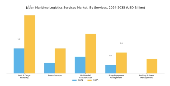 日本の海上物流サービス市場、特にサービス分野は、同国の活発な海上活動を支える上で重要な役割を果たしています。この分野は、港湾・貨物取扱業務を含む多様な重要機能を網羅しており、日本の繁忙な港湾における貨物の円滑な流入・流出を確保し、効率性を高め遅延を最小限に抑える上で極めて重要です。