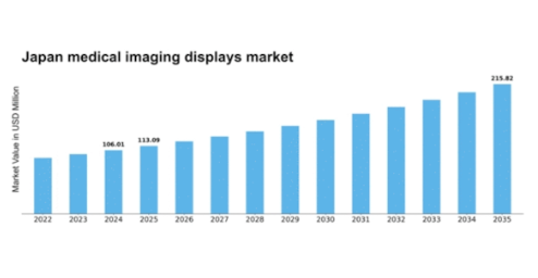 MRFRの分析によりますと、日本の医療用画像表示装置市場規模は2024年に1億601万米ドルと推定されております。