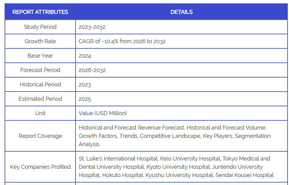さらに、日本の高齢化に伴い慢性疾患の罹患率が高まっており、専門医療への需要が増加しています。長期医療ビザの導入や外国人患者受け入れ病院の認定といった政府施策は、医療観光地としての日本の魅力をさらに高め、2026年から2032年にかけて年平均成長率(CAGR)10.4%での市場成長を可能にしております。