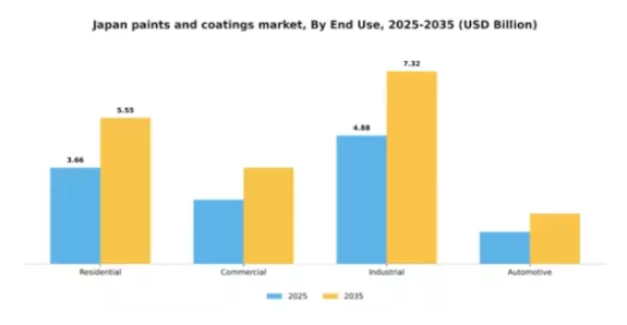 日本塗料コーティング剤市場規模予測(用途別、2019-2035年) (10億米ドル)