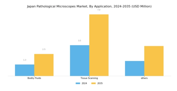 日本の病理顕微鏡市場は、医療分野における分析能力強化という広範な潮流を反映し、様々な応用分野で使用される精密診断ツールへの需要増加に牽引され、著しい成長可能性を示しています。このダイナミックな環境において、体液分析や組織スキャンといった応用分野が重要な役割を担っています。