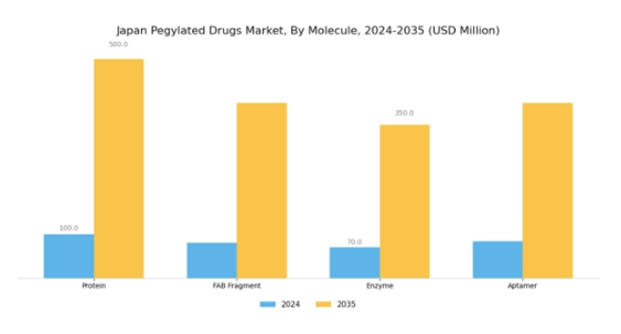 日本における慢性疾患の増加傾向は、ペグ化薬剤市場の重要な推進要因です。がん、糖尿病、自己免疫疾患などの疾患がより一般的になりつつあり、高度な治療選択肢が必要とされています。最近の健康統計によれば、慢性疾患は日本の全死亡原因の約60%を占めており、効果的な治療法の緊急性が浮き彫りになっています。ペグ化薬剤は、半減期の延長と免疫原性の低減で知られており、これらの疾患管理にますます活用されています。医療従事者が患者の治療成果を向上させる革新的ソリューションを求める中、この傾向は継続する見込みです。したがって、ペグ化薬剤市場は、慢性疾患管理の複雑性に効果的に対処できる治療法への需要に牽引され、大幅な成長が見込まれます。