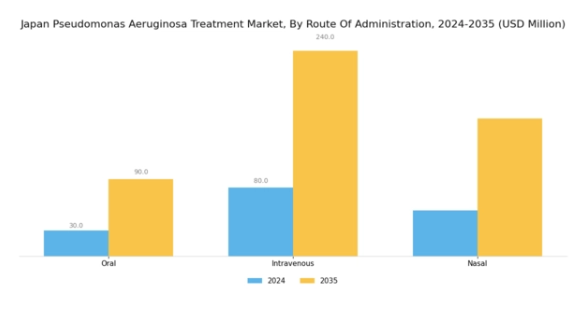 日本の緑膿菌治療市場では、この頑強な細菌による感染症に苦しむ患者の多様なニーズを反映し、様々な投与経路が重視されています。経口投与は患者にとって非侵襲的で便利な選択肢となり、特に外来患者における服薬遵守率の向上に寄与します。一方、静脈内投与は重篤な感染症治療の基盤であり、入院中の重症患者に対して迅速な治療効果をもたらします。鼻腔内投与は、特に局所治療用途において注目を集めており、全身への影響を最小限に抑え、患者の快適性を向上させます。