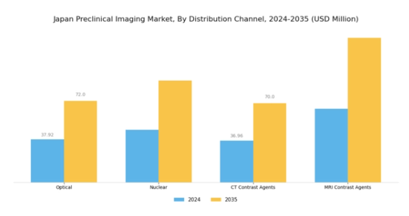 日本の前臨床イメージング市場、特に流通チャネル分野においては、様々な技術的進歩と医療ニーズに牽引され、多様な状況が展開されております。主な要素の中でも、光学イメージングは高解像度でのリアルタイム画像提供が可能であることから注目を集めており、疾患の早期発見とモニタリングを促進します。これに対し核医学イメージングは、生体内での代謝プロセスを可視化することを可能にし、創薬と開発において極めて重要であるため、効果的な研究成果への重要な貢献要素となっています。
