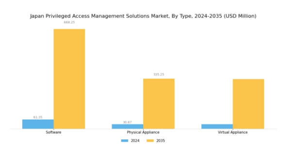 日本の特権アクセス管理ソリューション市場は、様々な分野における堅牢なサイバーセキュリティ対策の必要性が高まっていることを背景に、堅調な成長を見せています。この市場における種類別セグメンテーションは、ソフトウェア、物理アプライアンス、仮想アプライアンスという3つの主要カテゴリーで構成されており、それぞれが組織の多様なニーズに対応する上で独自の役割を担っています。ソフトウェアソリューションは、柔軟性、拡張性、既存ITインフラとのシームレスな統合性を提供し、大企業環境から中小企業まで幅広いユースケースに対応できるため、極めて重要視されています。