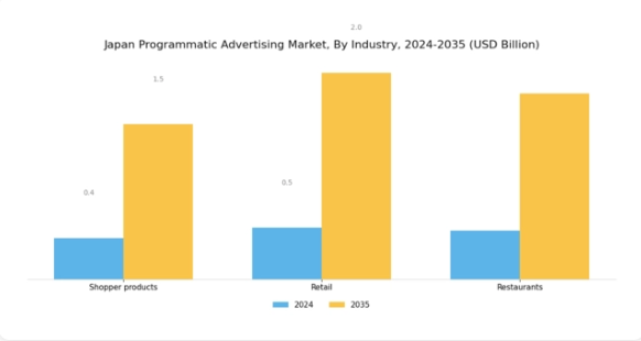 日本のプログラマティック広告産業は、様々な分野におけるデジタル消費者のニーズに応える形で進化を続け、大きな可能性を秘めています。近年では、小売業や消費財セグメントにおいて、データ駆動型戦略を活用して顧客エンゲージメントを高め、売上を促進するプログラマティック広告の導入が顕著に増加しています。小売業は大型デパートから地域密着型ブティックまで多岐にわたりますが、いずれも広告効果を最適化するためプログラマティック手法の採用を拡大しています。