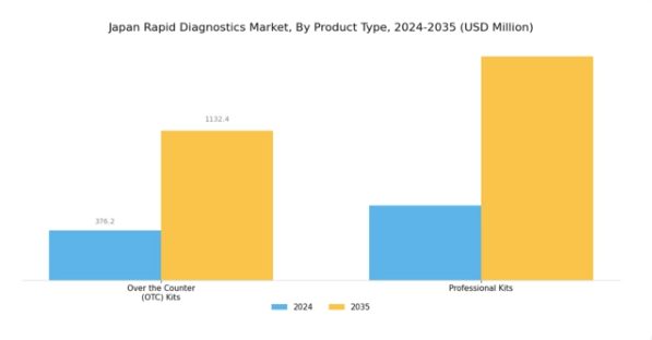 日本の迅速診断市場は、製品種類に焦点を当てたセグメンテーションの拡大が特徴であり、主に市販用キット(OTCキット)と専門用キットに分類されます。OTCキットセグメントは、入手容易性と利便性から大きな牽引力を示しており、個人が自宅で検査を実施できる点が強みです。感染症の発生などの健康危機時には、迅速な意思決定と早期介入を可能にするため、特に重要性を増しています。