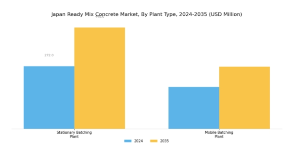 日本のレディーミクストコンクリート市場、特にプラントタイプセグメントは、多様な建設ニーズに対応する異なるカテゴリーに区分される点が特徴です。この区分には主に固定式バッチプラントと移動式バッチプラントが含まれ、それぞれ日本の建設現場において独自の役割を果たしています。