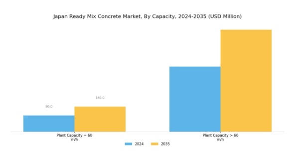 日本のレディーミクストコンクリート市場、特に生産能力セグメントにおいては、プラントごとの能力差によって複雑な状況が生じています。60m³/hのプラント能力で稼働する施設は、中小規模の建設プロジェクトや都市開発を中心に、中程度の需要を満たす上で重要な役割を担っています。この能力は、東京のような人口密集地域において不可欠な、地域市場のニーズへの柔軟性と迅速な対応を支えています。