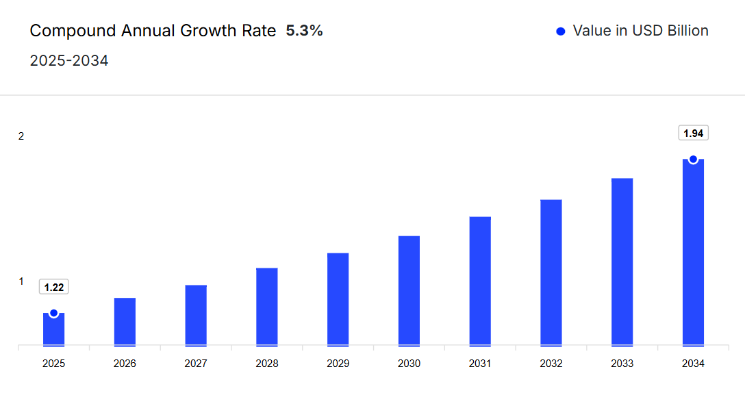 2025年から2034年の予測期間において、市場は健全な成長を遂げ、2034年までに約19億4000万米ドルの規模に達すると見込まれています。