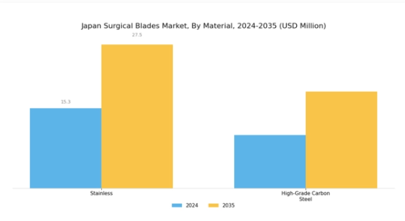 日本の医療施設が外科的提供体制の継続的な改善を図る中、これらの素材の重要性はますます顕著になっております。高齢化や慢性疾患の増加の影響を受けた外科手術件数の増加は、この分野におけるさらなる需要を牽引すると予想されます。加えて、低侵襲手術への傾向が強まる中、信頼性が高く鋭利な外科用ブレードの必要性は、患者ケアの質を維持する上で依然として極めて重要です。