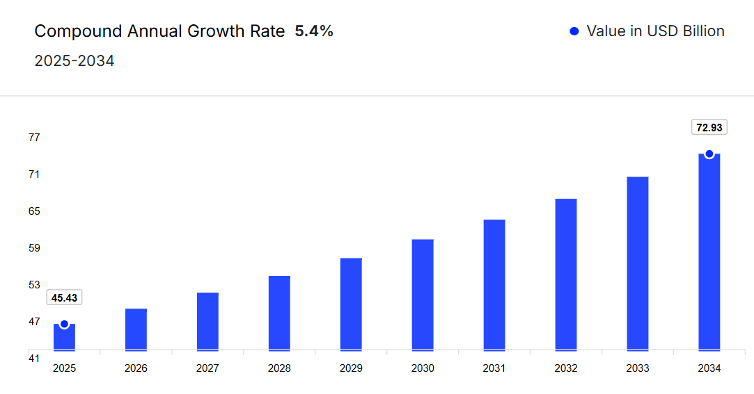 2025年から2034年にかけて、市場は年平均成長率(CAGR)5.40%で成長すると予測されております。
