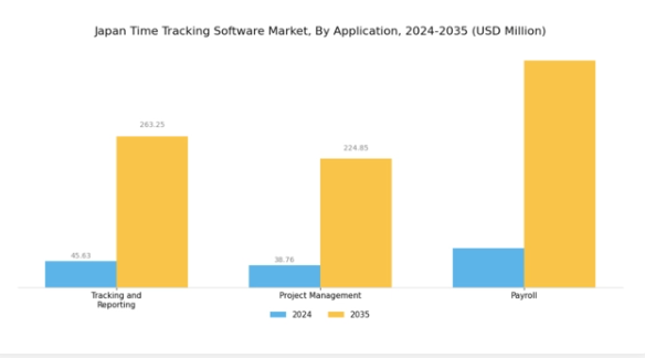 日本のタイムトラッキングソフトウェア市場、特にアプリケーション分野は、組織が効率的な時間管理ソリューションを求める中で、非常に重要な関連性を示しています。この分野は、追跡・報告、プロジェクト管理、給与計算といった必須機能を包含しており、それぞれが業務効率化において重要な役割を果たしています。