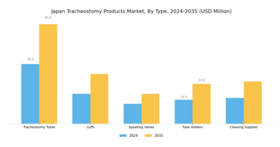 日本の医療費支出は増加傾向にあり、これは気管切開製品市場に大きな影響を与えています。政府は予算の相当部分を医療に割り当てており、支出はGDPの約10.9%に達しています。この財政的コミットメントにより、気管切開製品を含む先進医療機器の調達が促進されています。病院や医療施設は患者ケアの向上に向け、高品質な機器への投資を増加させており、これが市場成長を牽引する可能性が高いです。さらに、患者の快適性と安全性を向上させる革新的製品の導入は、さらなる投資を呼び込むと予想されます。医療提供者が効果的な治療選択肢を優先する中、気管切開製品市場は医療支出の増加傾向から恩恵を受ける態勢にあります。