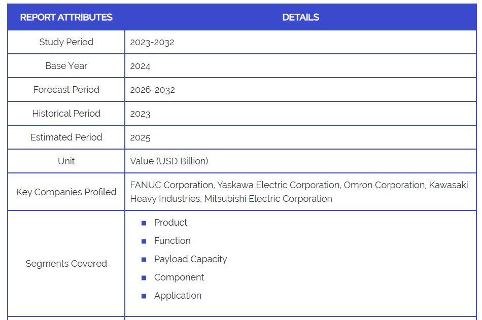 - 主要企業: ファナック株式会社、安川電機株式会社、オムロン株式会社、川崎重工業株式会社、三菱電機株式会社