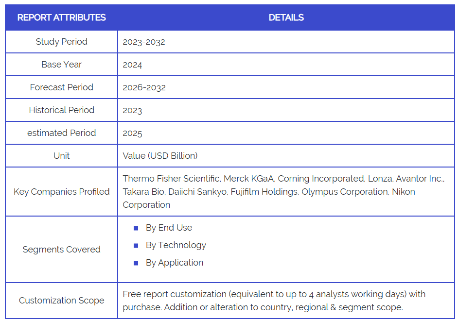 • 主要企業:サーモフィッシャーサイエンティフィック、メルクKGaA、コーニング社、ロンザ、アバンター社、タカラバイオ、第一三共、富士フイルムホールディングス、オリンパス株式会社、ニコン株式会社
