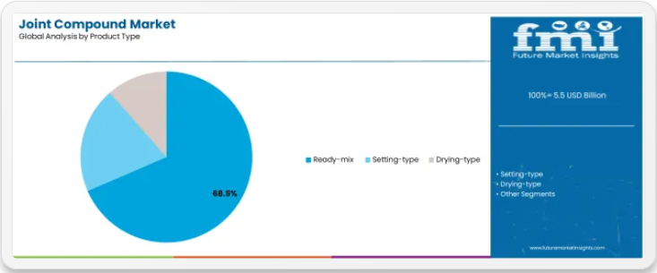 住宅所有者の内装改修への投資増加と、DIYユーザーにおけるプロ仕様仕上げ材への嗜好の高まりが、優れた用途特性と仕上げ品質を備えたレディーミクストコンパウンドの需要を創出している。職場の粉塵曝露に関する強力な規制環境と、プロ向け・小売チャネルを通じた包括的な製品選択が、住宅・商業用ドライウォール仕上げ作業全体で、軽量・防塵・速乾製品を含む特殊配合の採用を支えている。