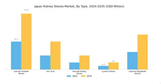 日本の腎結石市場は多様なタイプ別セグメンテーションが特徴であり、各種結石の有病率や治療アプローチを理解する上で重要な役割を果たす。本市場は、食習慣・肥満率の増加・都市型生活様式と深く関連する腎結石発生率の上昇に大きく影響を受けている。
