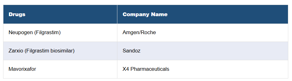 本レポートでは、現在白血球減少症治療薬として販売されている薬剤および後期開発段階のパイプライン薬剤についても詳細な分析を提供しております。