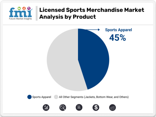 スポーツアパレルセグメントは、ファンがチームや選手への忠誠心を示す高品質なブランド衣類を求める傾向が強まる中、2025年には市場の45.0%を占めると予測される。特にECプラットフォームの台頭に伴い、スポーツジャージやTシャツなどのアパレル人気が高まっていることが、このセグメントを後押ししている。