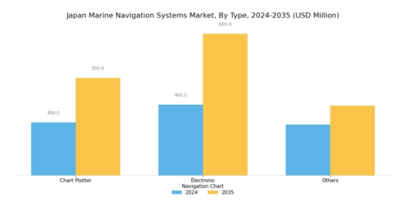 日本の船舶航法システム市場は、多様なタイプ区分が特徴であり、海上安全と航法効率の向上に重要な役割を果たしている。これらの区分にはチャートプロッター、電子海図(ENC)、その他が含まれ、それぞれが日本の船舶航法システム全体の機能性に寄与する独自の目的を果たしている。