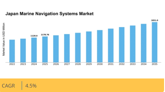 日本の船舶航法システム市場は、技術進歩と海事活動の増加を背景に、2024年から2035年にかけて年平均成長率(CAGR)4.5%で成長すると予測される。