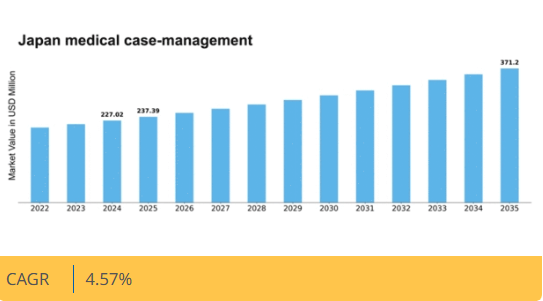 日本の医療ケース管理市場は、技術進歩と医療需要の増加を背景に、2024年から2035年にかけて年平均成長率(CAGR)4.57%で成長すると予測されています。
