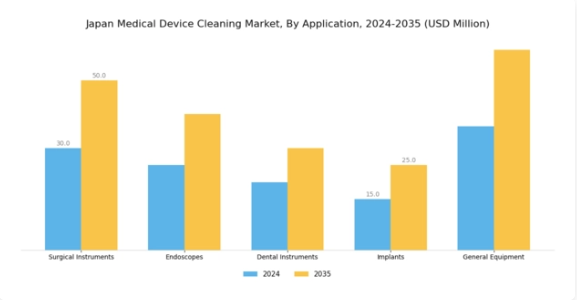 日本の医療機器洗浄市場、特にアプリケーション分野は、医療現場で使用される多様な重要機器に対応するため、様々な機会と課題を示しています。この市場は、患者の安全と医療の質を維持する上で最優先事項である厳格な衛生基準への準拠という必須要件によって形作られています。外科用器具は頻繁に使用されること、および手術部位感染を防ぐための徹底的な洗浄が不可欠であることから、この分野で支配的な地位を占めており、複雑なバイオバーデンを除去するために特化した効果的な洗浄ソリューションの需要を牽引しています。