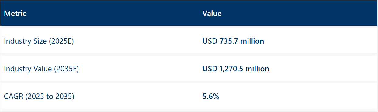 医療用輸送ボックス市場は、2025年の7億3,570万米ドルから、2035年には12億7,050万米ドルへと成長し、予測期間中のCAGRは5.6%になると予測されています。2024年の売上高は6億9,660万米ドルに達し、安定した需要の推移を示しています。この成長は、ワクチン、血液、臓器などの医療用品の安全で温度管理された輸送ソリューションの需要の増加によるものです。世界的な医療イニシアチブの増加と効率的なコールドチェーン物流の必要性により、医療用輸送ボックスの採用がさらに進んでいます。