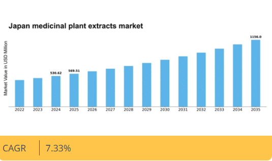 日本の薬用植物エキス市場は、健康意識の高まりと天然製品への需要に牽引され、2024年から2035年にかけて年平均成長率(CAGR)7.33%で成長すると予測されている。