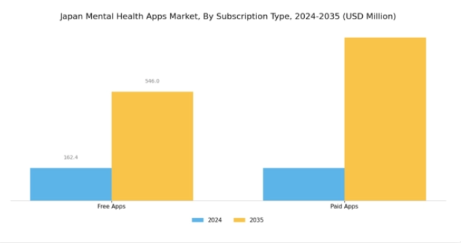 日本のメンタルヘルスアプリ市場は、ユーザーの多様なサブスクリプションタイプ嗜好に牽引され、顕著な変革を経験している。市場は無料アプリと有料アプリの両方が大きな存在感を示す特徴がある。無料アプリは通常、幅広いユーザー層を惹きつけ、金銭的障壁なく必須のメンタルヘルスリソースやツールを提供することで、アクセシビリティを促進し、より多くの個人がメンタルヘルス支援に関与するよう促す。一方、有料アプリは主に高度な機能やパーソナライズされたサービスを求めるユーザーを対象とし、よりカスタマイズされた体験を提供する。